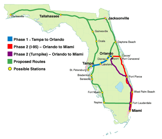 The state is working on commuter rail lines, which the Florida Public Transportation Association deems to be “as important, if not more important, to the economy of Florida as the sexy high speed rail project.” The SunRail line, already with a dedicated funding source and established right-of-way, will follow existing freight tracks in Central Florida. And TriRail, which already runs 50 trains a day in South Florida, recently got a boost from the governor.