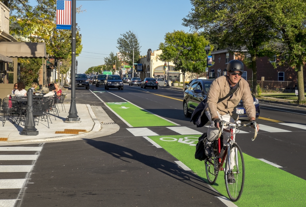 This project is a great example of how place-making roadway design combined with demand from residents and a progressive business community can work hand-in-hand with government to spur big gains in economic development. The project all started with a few good businesses on North Ave. and nearby residents who wanted to walk and bike there instead of drive. It was probably five years ago when East Tosa resident Ed Haydin, an architect who specializes in community sensitive design and economic development, came to me to get ideas on how Wauwatosa might improve North Ave. for bicycle and pedestrian traffic. Ed is a bike guy, but he was very clear about his goals: “This isn’t a bike project, this is a neighborhood development project. Our goal is to spur new development on North Ave. to improve our neighborhood. I want my property value to go up and have more places to go where I live.”