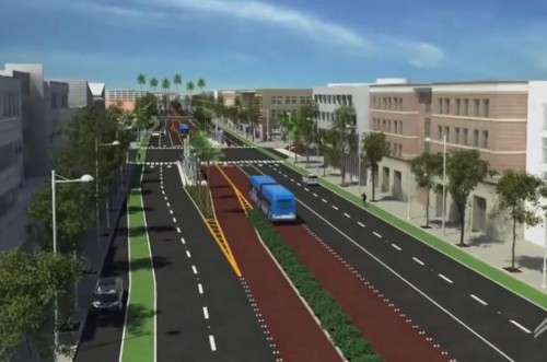 VTA (our county transportation agency) plans to build a Bus Rapid Transit system on El Camino Real from San Jose, across this part of the city of Santa Clara, all the way to Palo Alto. The preferred alternative for those who think systematically is a dedicated busway.