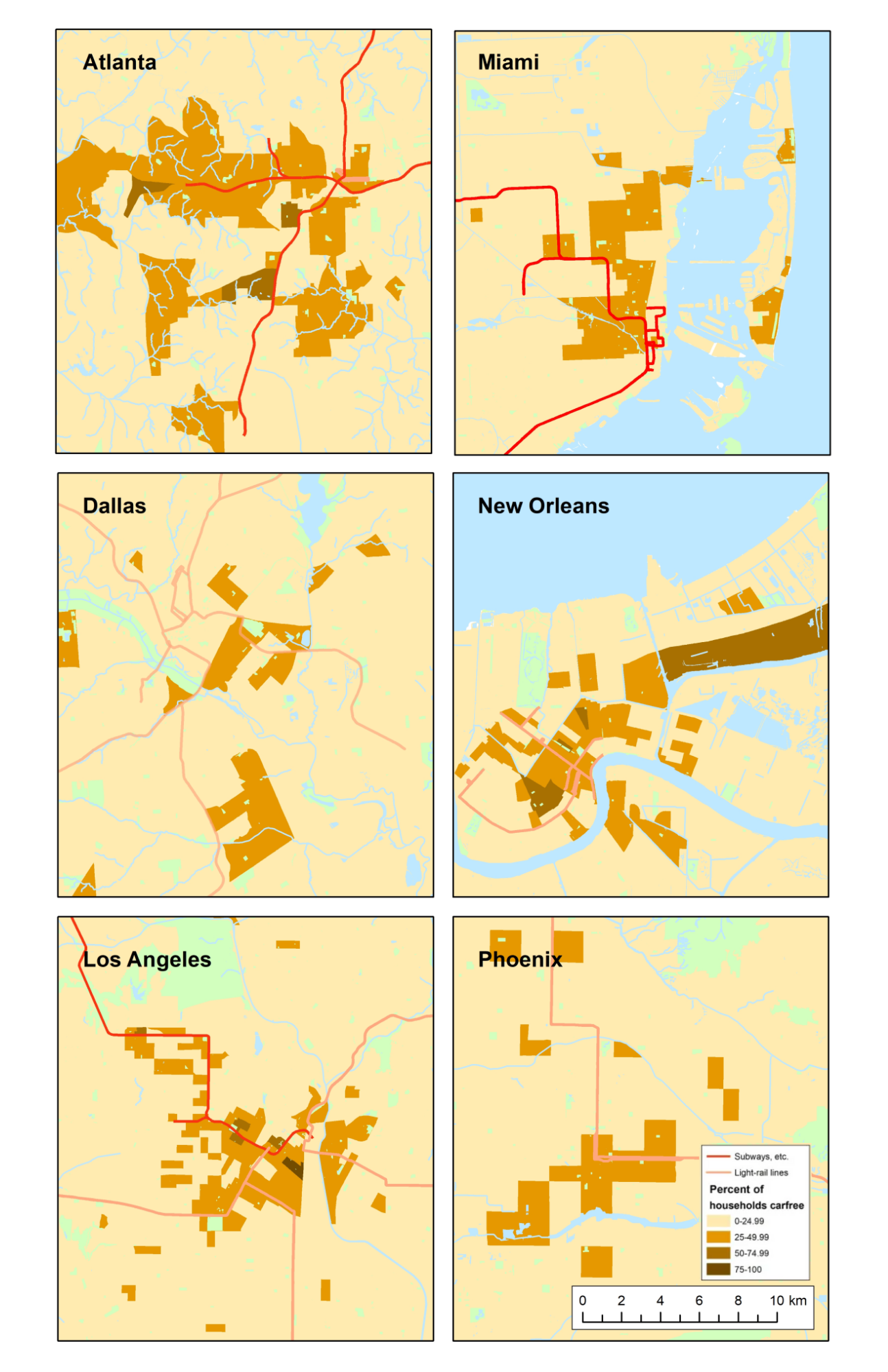 Even the most transit-poor U.S. cities have significant numbers of neighborhoods where almost no one drives, new research suggests — and where such neighborhoods are located often suggests a dire need for more transit to serve the under-resourced residents who need it most.