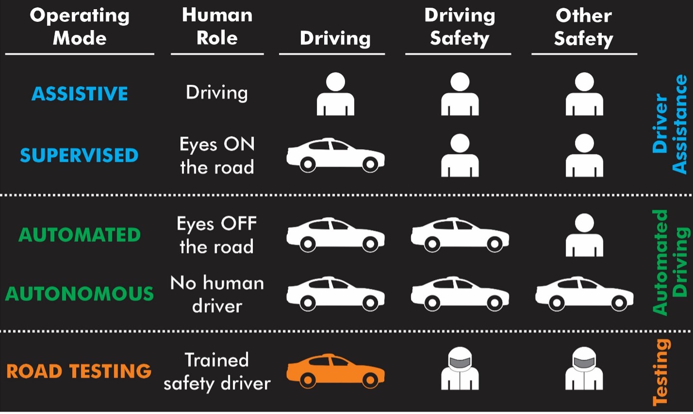 Simply put, J3016 is the wrong tool for educating consumers. It’s too confusing. Worse, it has been crafted by the automotive industry to have so much ambiguity and wiggle room that it can be readily gamed. One example is the “level two loophole” by which any company testing Level 3-5 technology on public roads can try to evade regulatory oversight by simply claiming that they are only Level 2 because there is a human driver minding their test platform.