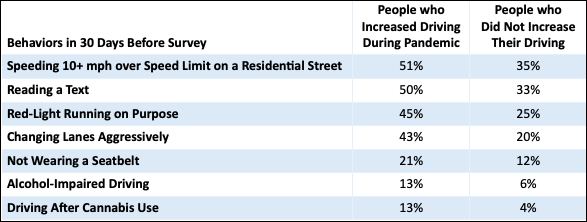 “Our research finds that higher-risk motorists accounted for a greater share of drivers during the pandemic than before it,” said Dr. David Yang, the foundation’s executive director. “Safety-minded individuals drove less, while many who increased their driving tended to engage in riskier behaviors behind the wheel.”