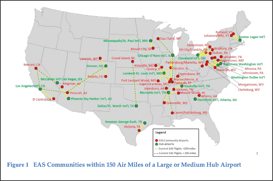 What the U.S. does have is a vast network of express buses, which studies show have about one-fifth of the per-passenger-mile emissions impact as air travel, based on average passenger loads for each mode.