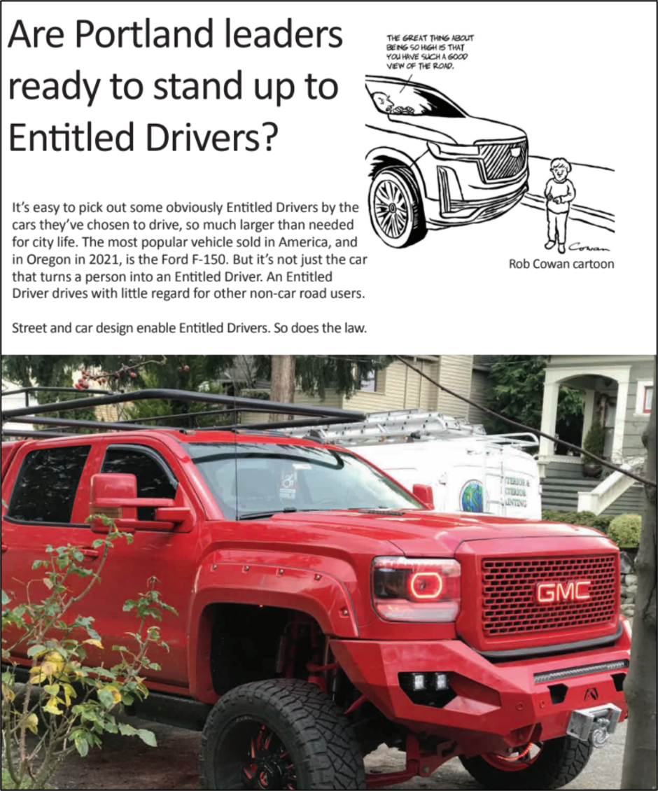 Certainly the most visible driver on U.S. roads is what Tuttle calls “entitled” drivers — and not just because they often drive the kind of ultra-huge vehicles that are most fatal to pedestrians, cyclists, and even motorists in smaller cars.